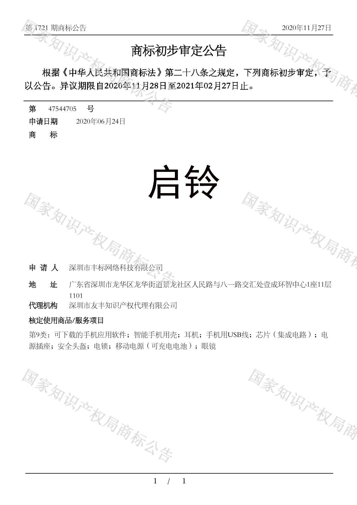 有效期限:2031-02-27 组合类型:中文注册号:47544705