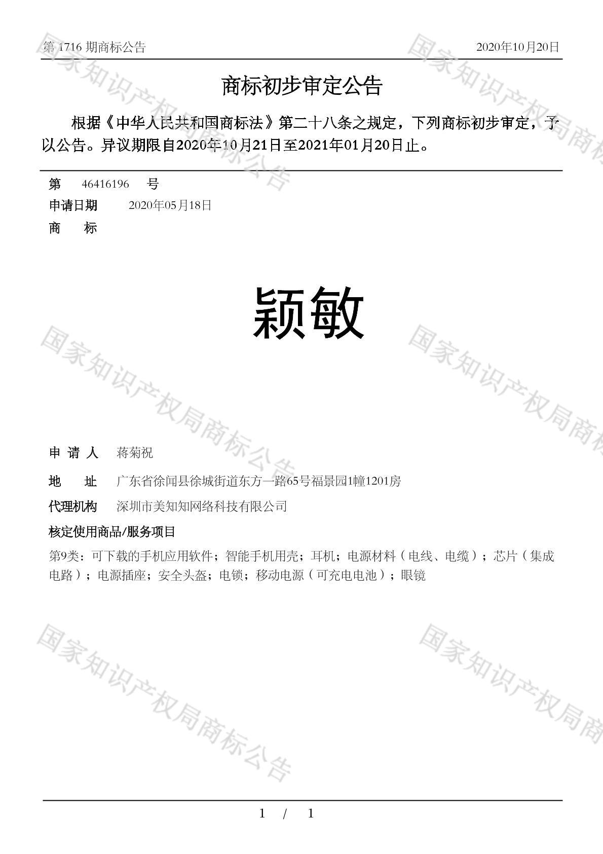 有效期限:2031-01-20 组合类型:中文注册号:46416196