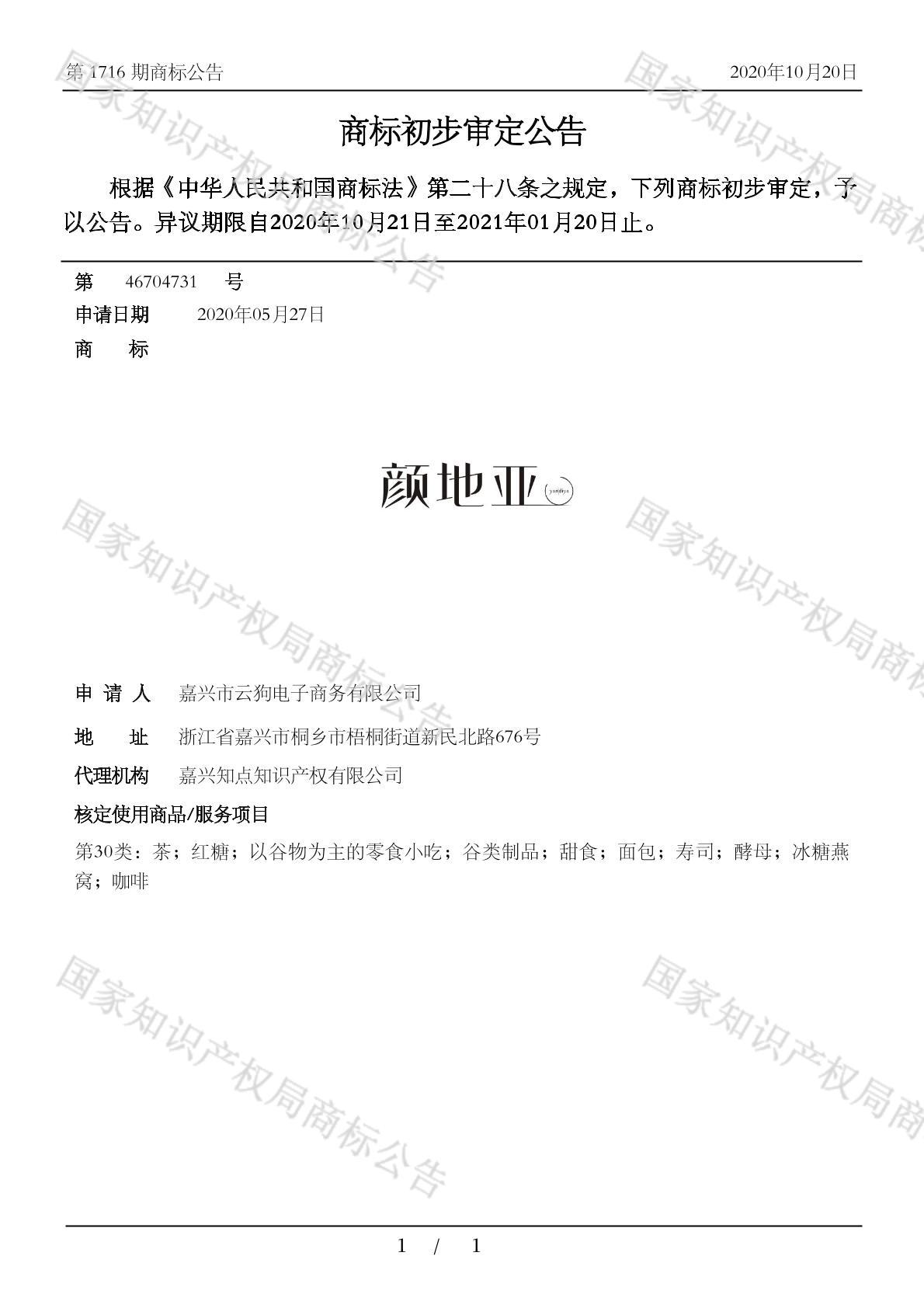 有效期限:2031-01-20 组合类型:中文注册号:46704731