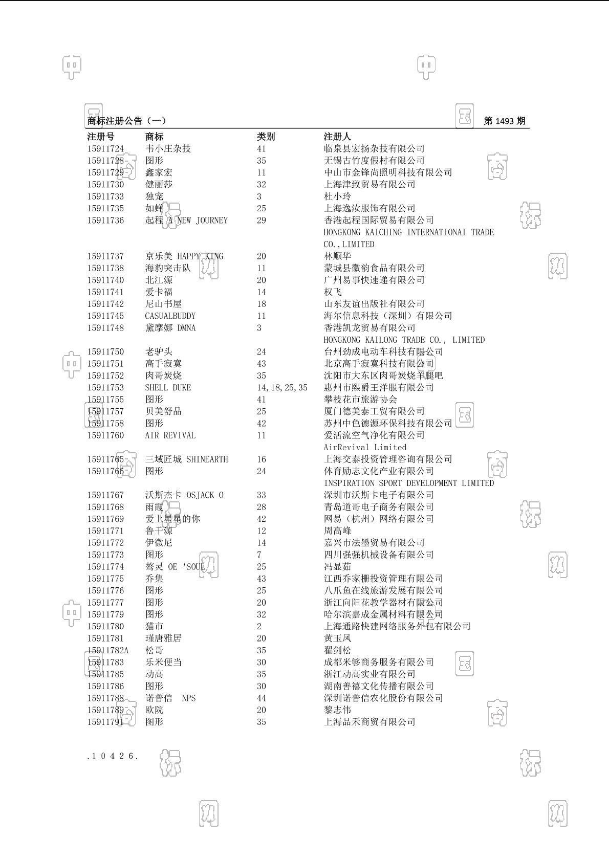 注册公告期号:1493