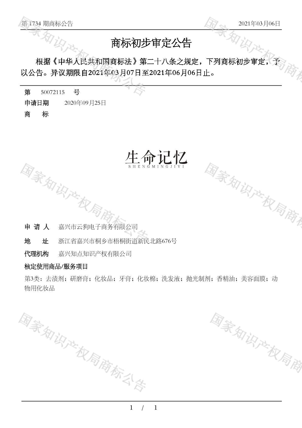 有效期限:2031-06-06 组合类型:中文注册号:50072115