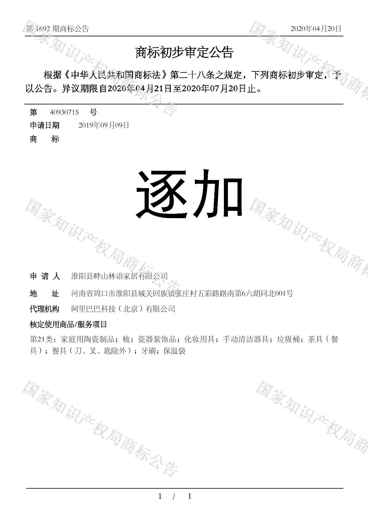 有效期限:2030-07-20 组合类型:中文注册号:40930715