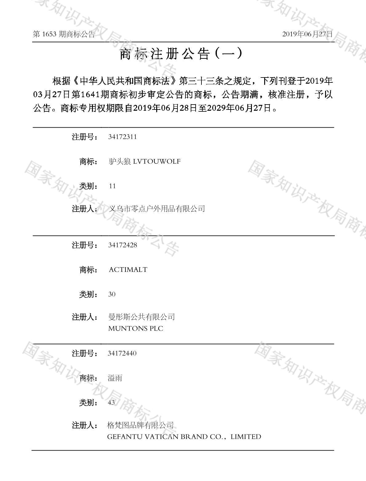注册公告期号:1653
