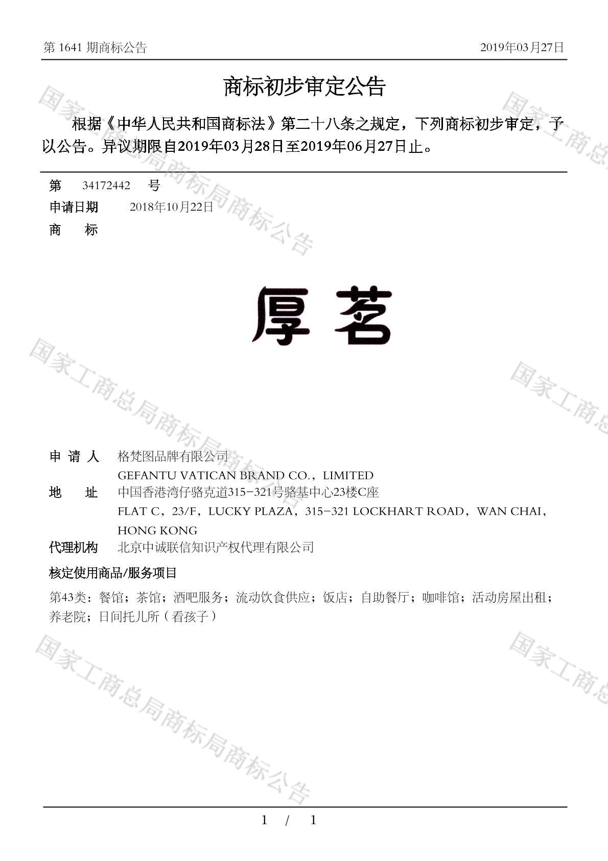 初审公告期号:1641