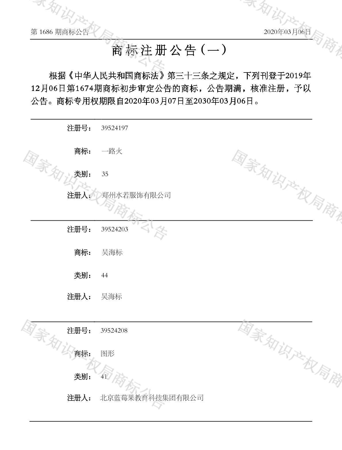 有效期限:2030-03-06 组合类型:中文注册号:39524197