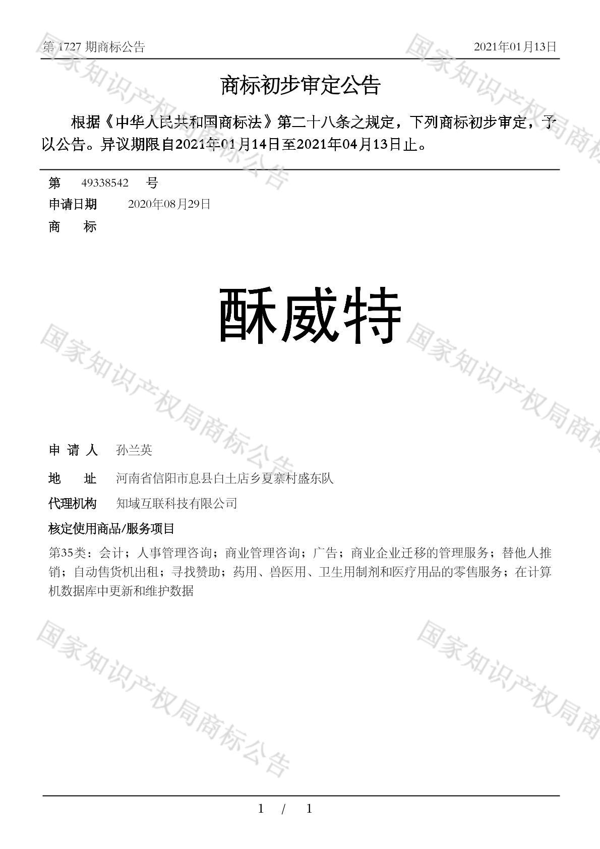 有效期限:2031-04-13 组合类型:中文注册号:49338542