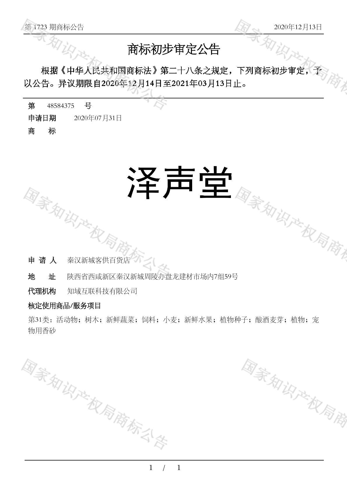 您当前位置:首页商标转让31类商标泽声堂