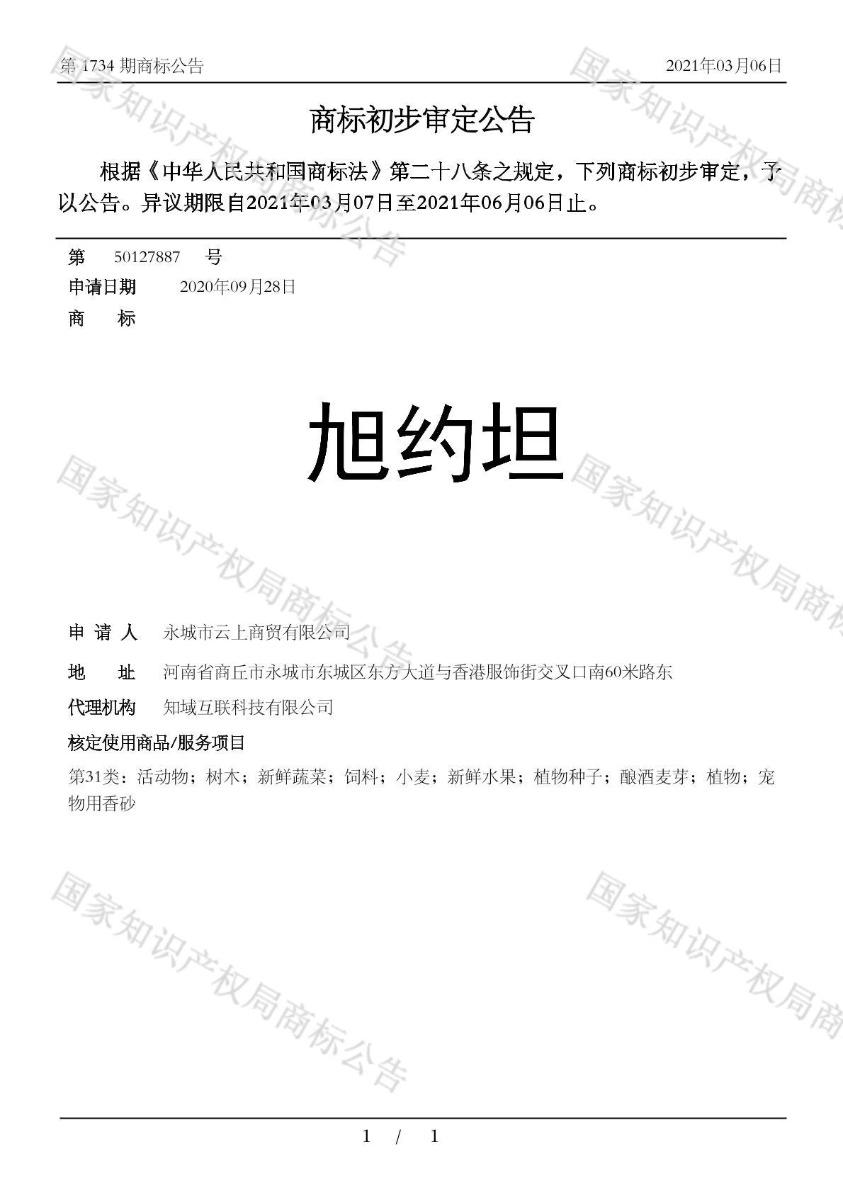 您当前位置:首页商标转让31类商标旭约坦