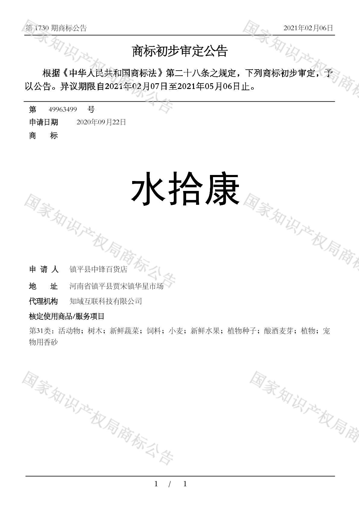 您当前位置:首页商标转让31类商标水拾康