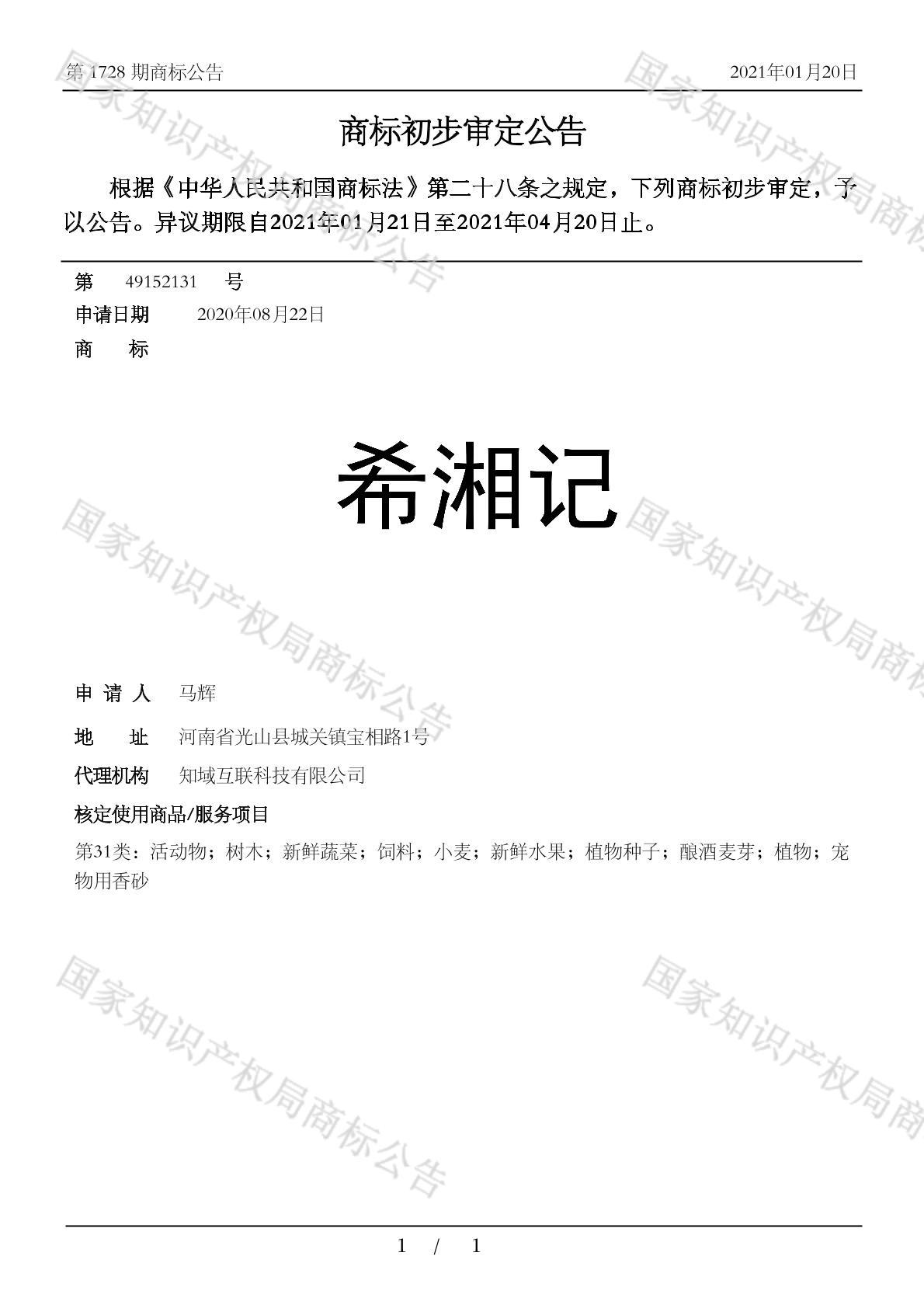 您当前位置:首页商标转让31类商标希湘记