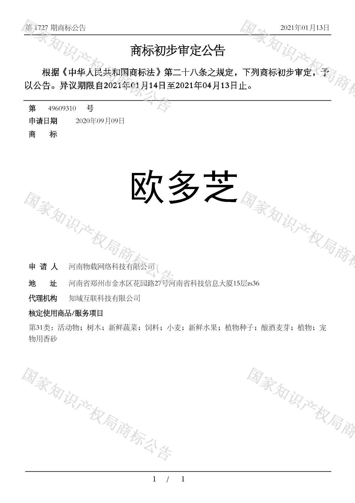 有效期限:2031-04-13 组合类型:中文注册号:49609310