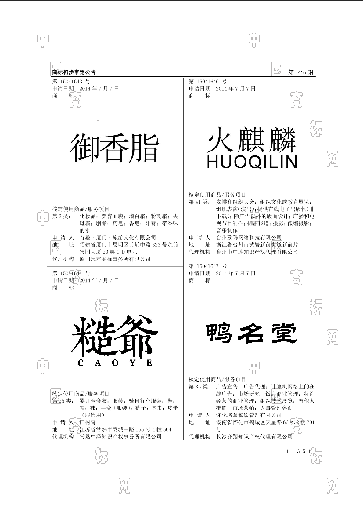 有效期限:2025-08-13 组合类型:中文注册号:15041644