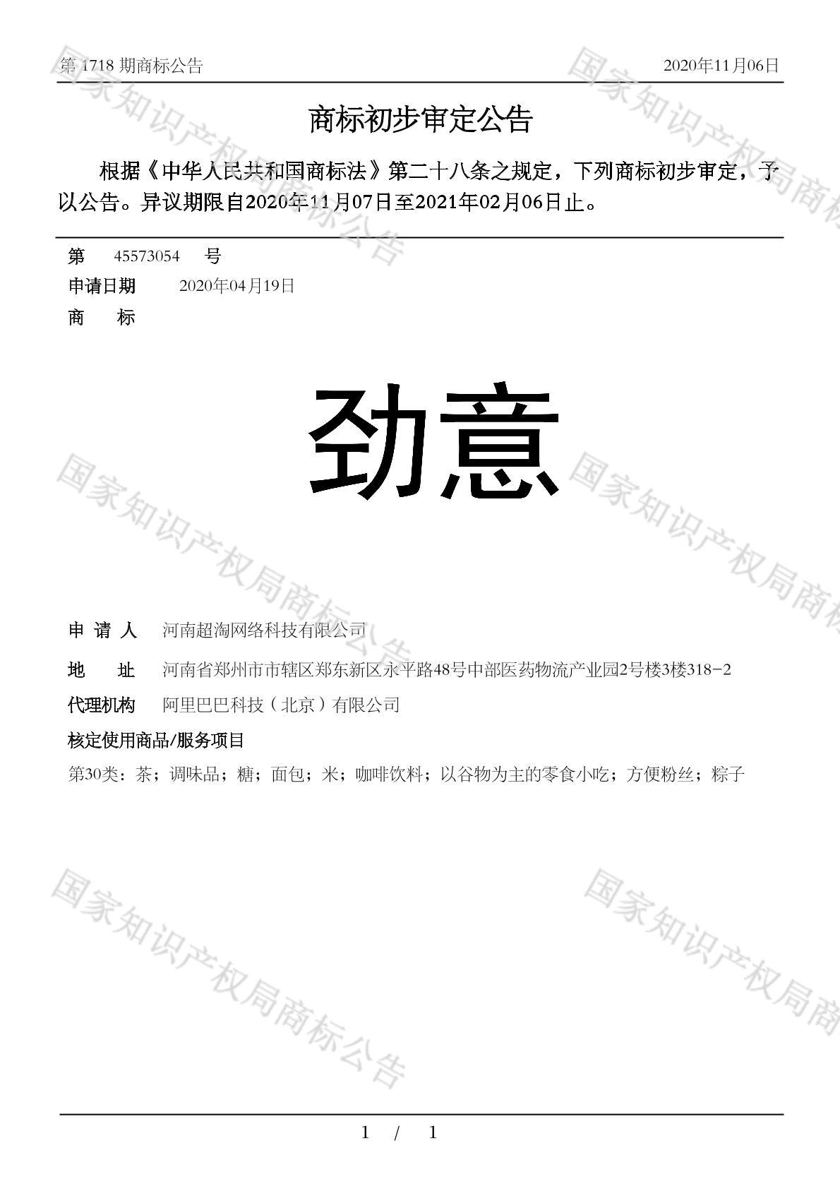 有效期限:2031-02-06 组合类型:中文注册号:45573054