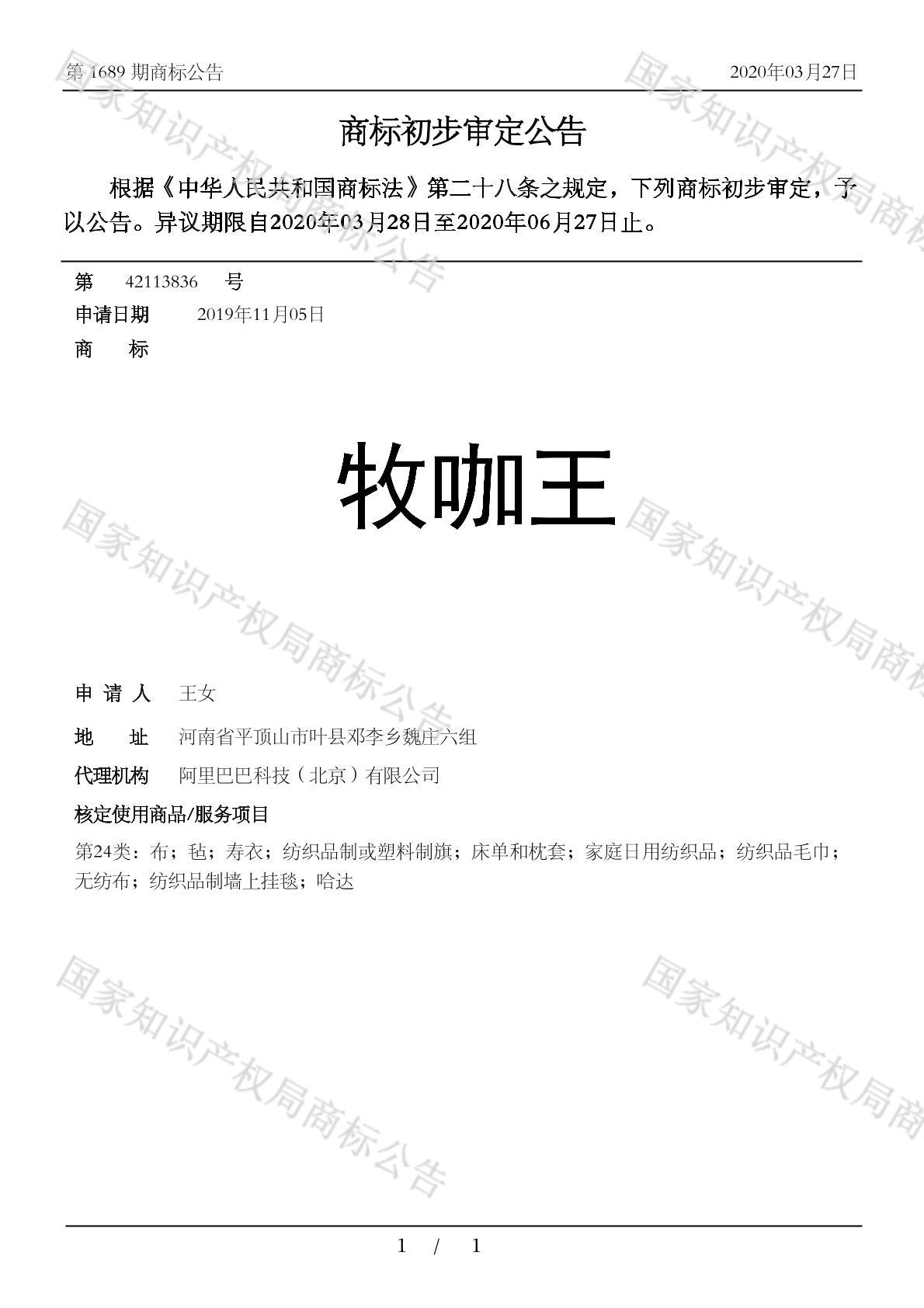 有效期限:2030-06-27 组合类型:中文注册号:42113836