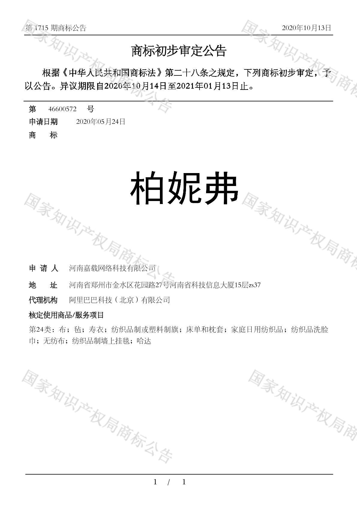 有效期限:2031-01-13 组合类型:中文注册号:46600572