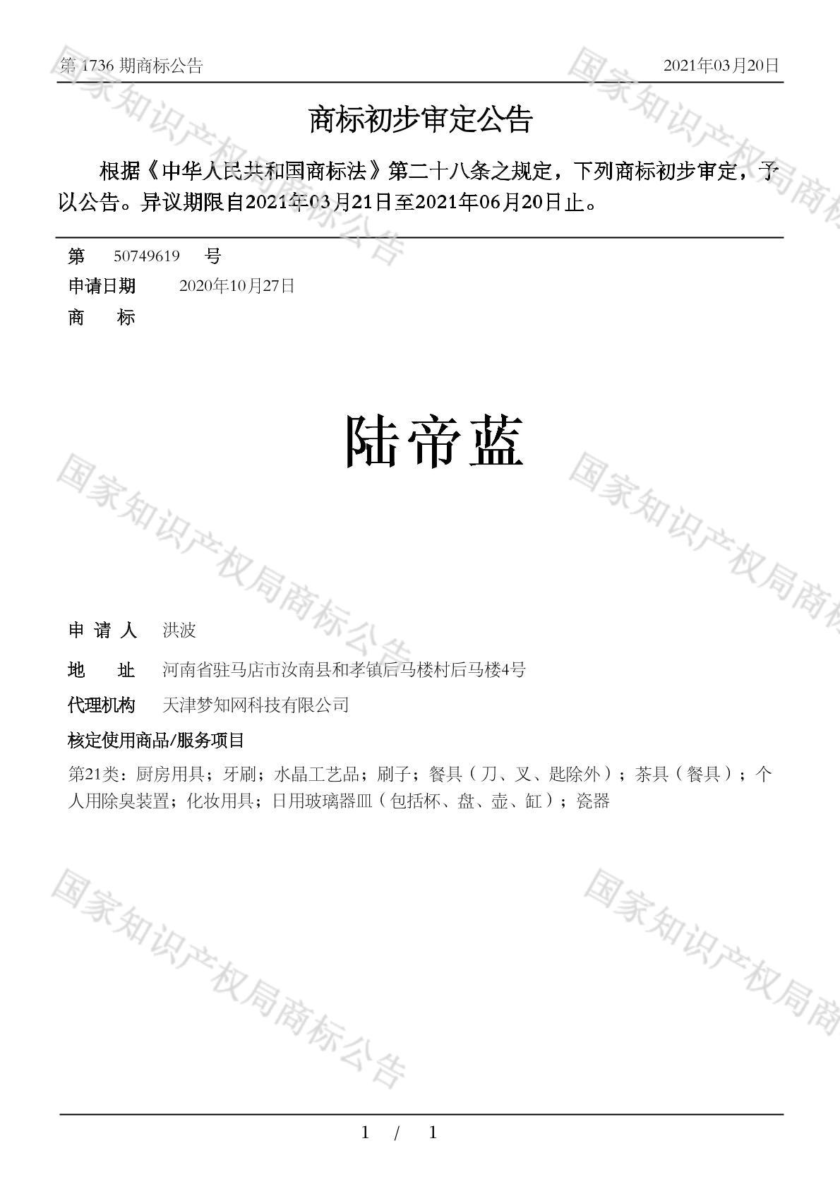 有效期限:2031-06-20 组合类型:中文注册号:50749619