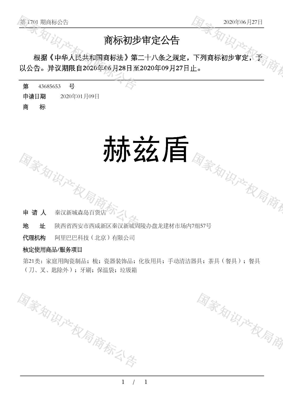 有效期限:2030-09-27 组合类型:中文注册号:43685653