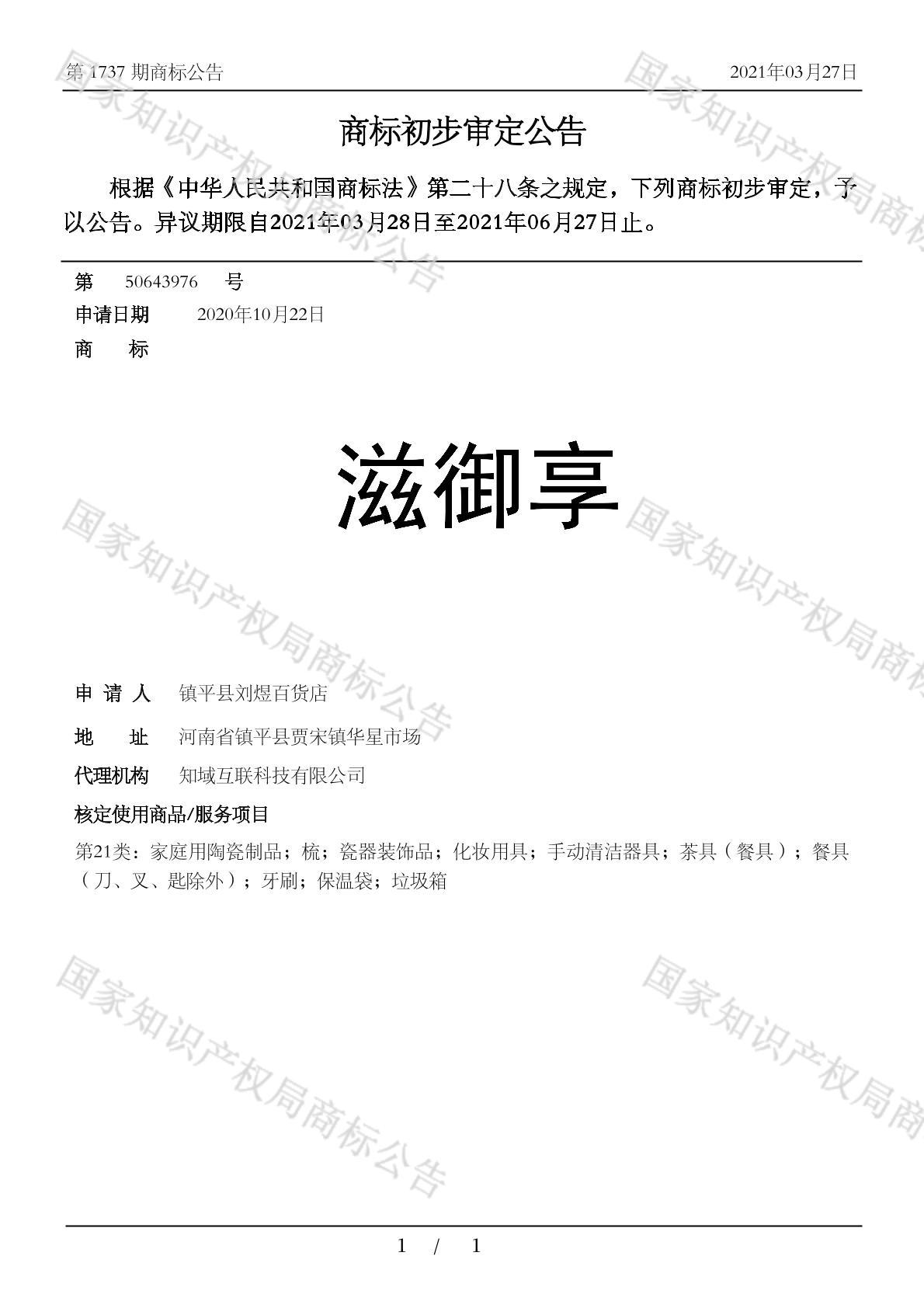 有效期限:2031-06-27 组合类型:中文注册号:50643976