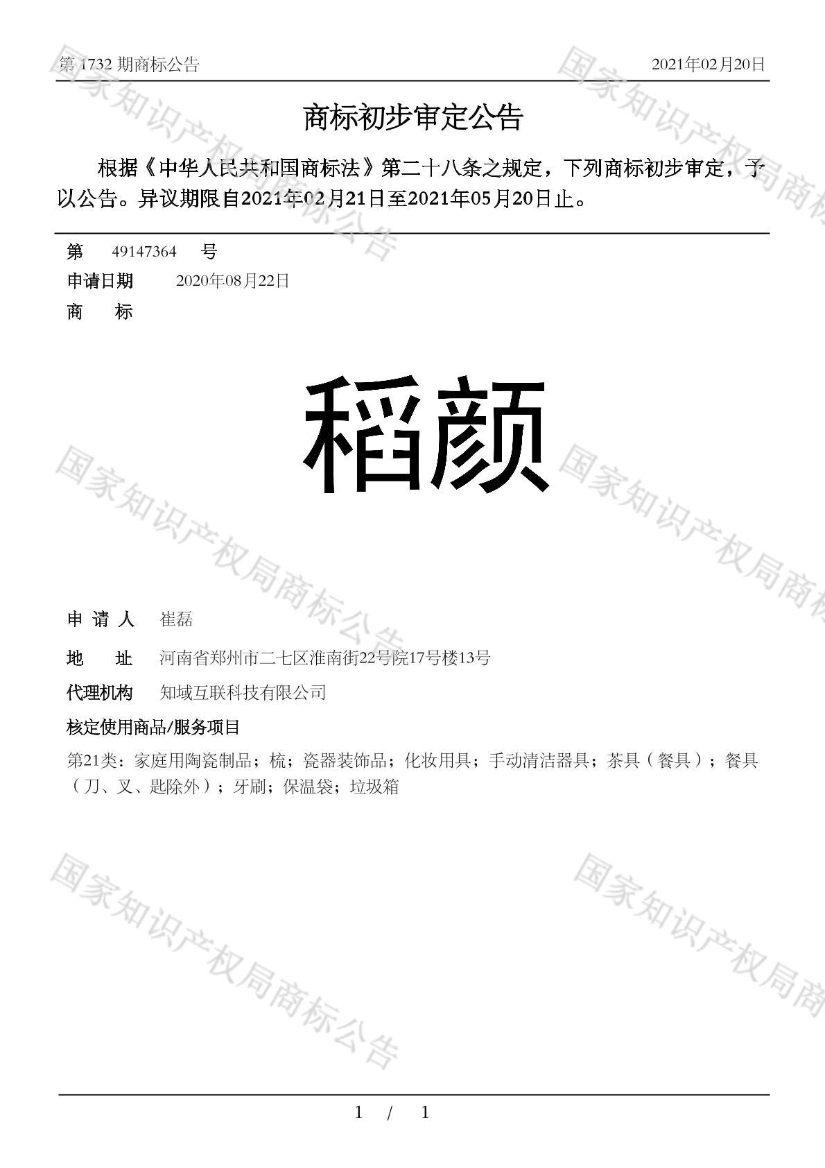 您当前位置:首页商标转让21类商标稻颜