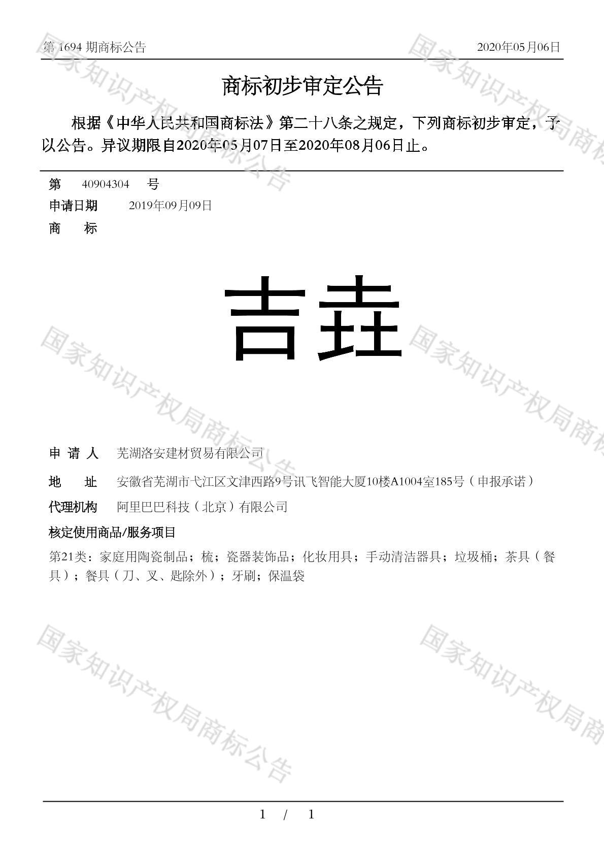 有效期限:2030-08-06 组合类型:中文注册号:40904304