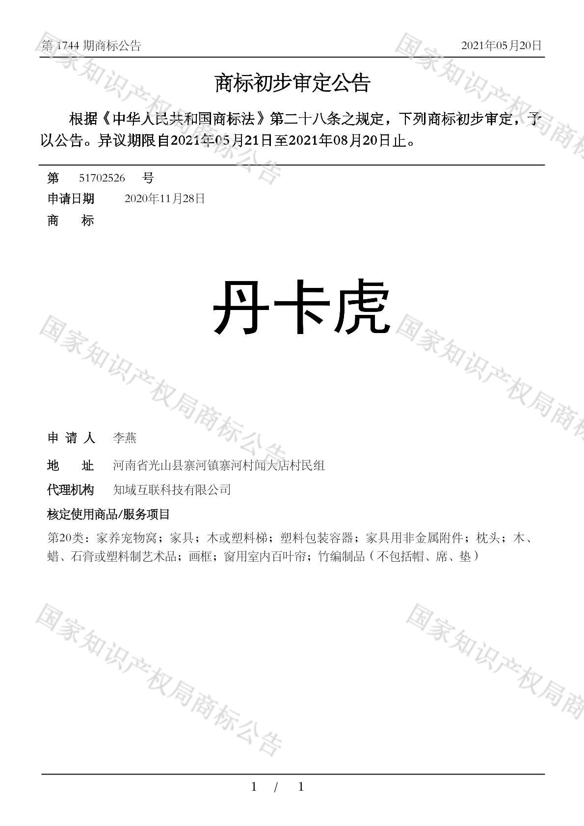 有效期限:2031-08-20 组合类型:中文注册号:51702526