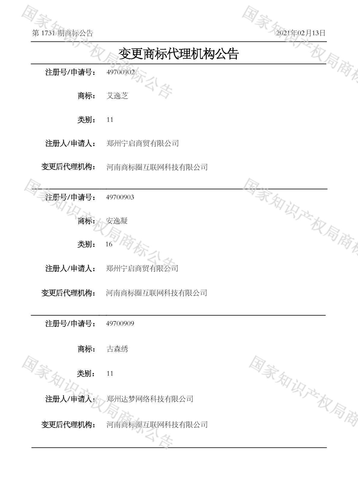 有效期限:2031-04-20 组合类型:中文注册号:49700903