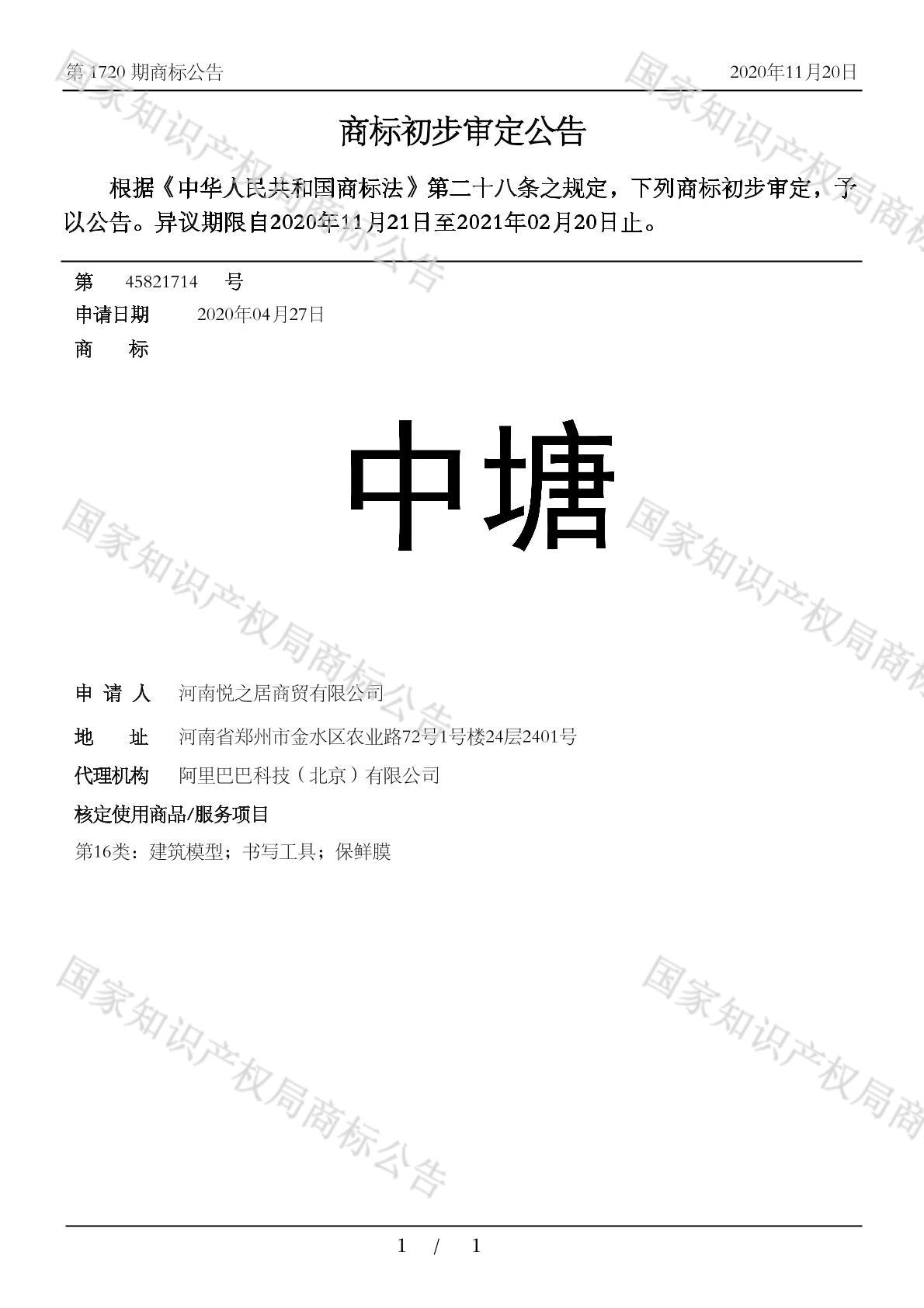 初审公告期号:1720