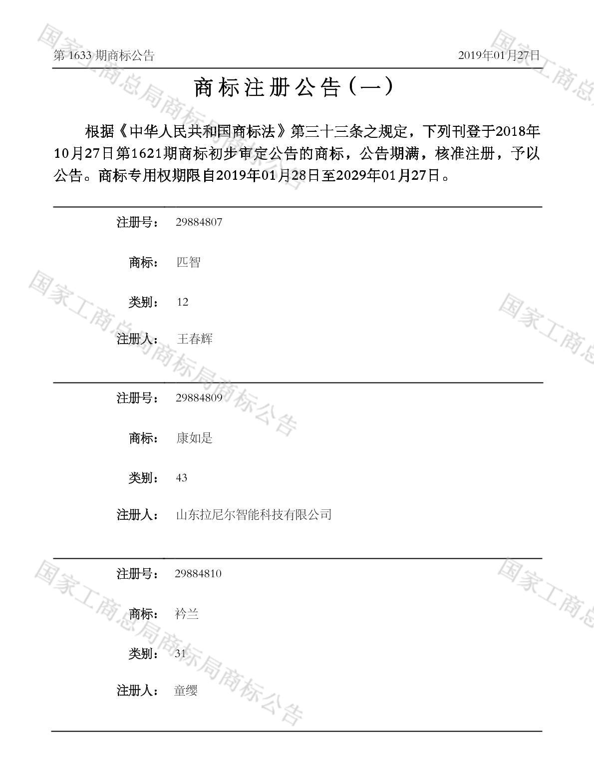 注册公告期号:1633