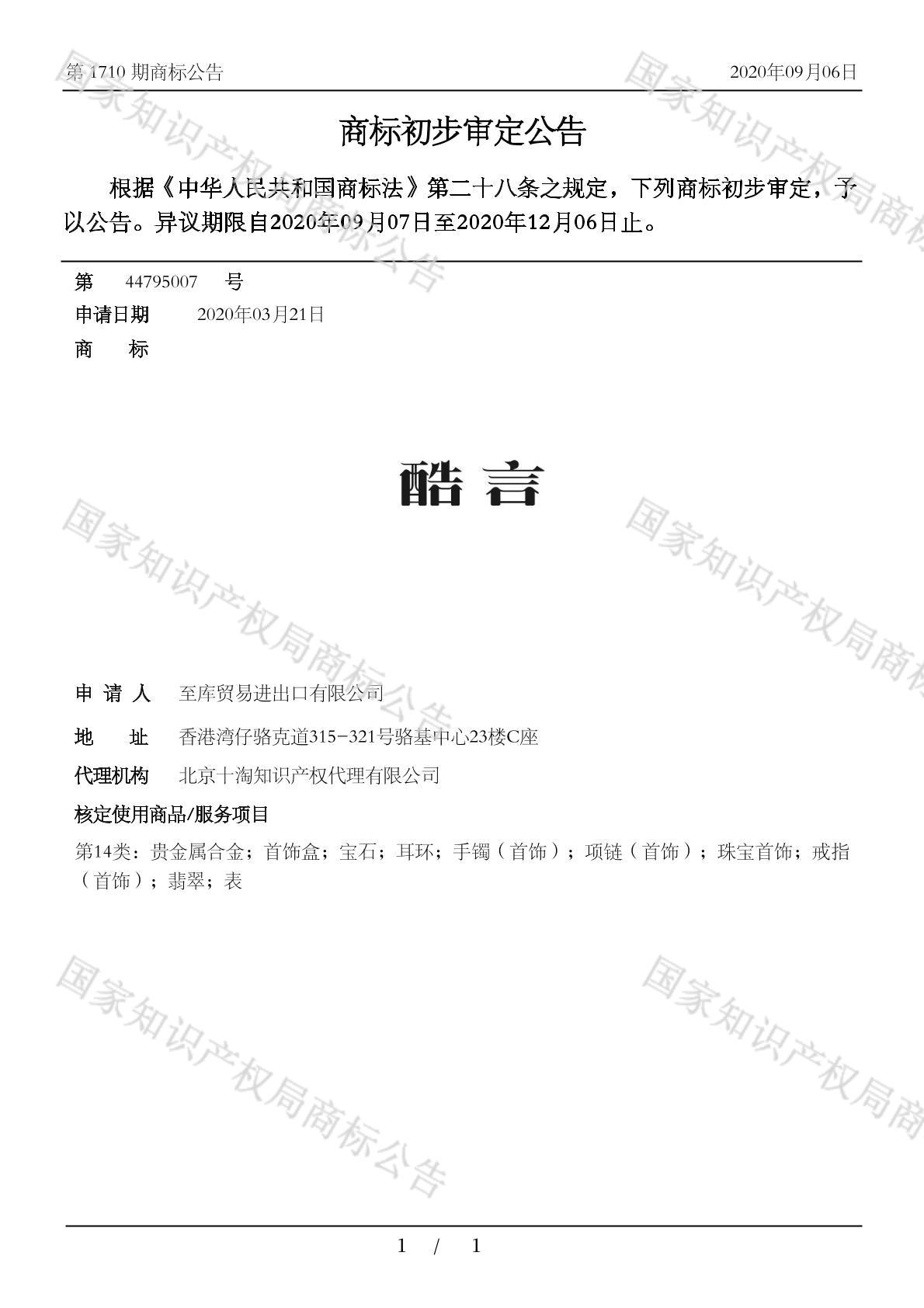 初审公告期号:1710