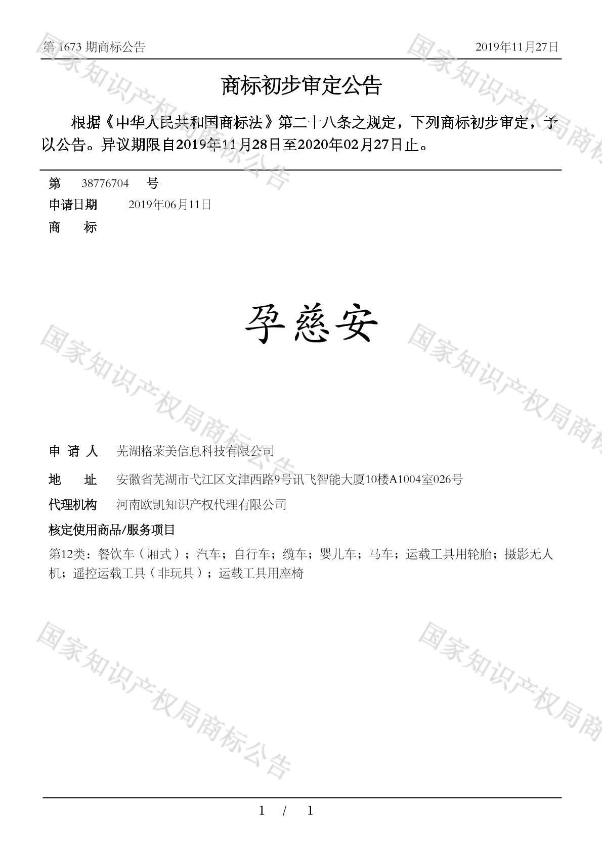 有效期限:2030-02-27 组合类型:中文注册号:38776704