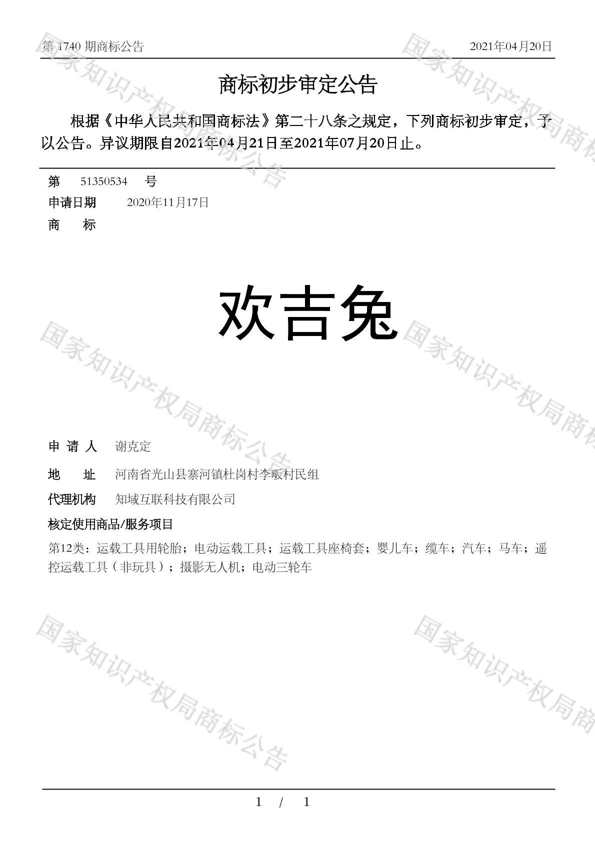 有效期限:2031-07-20 组合类型:中文注册号:51350534