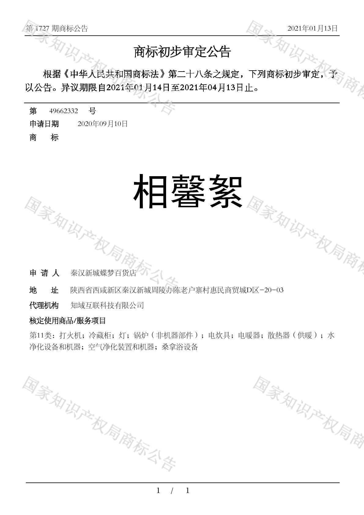 您当前位置:首页商标转让11类商标相馨絮