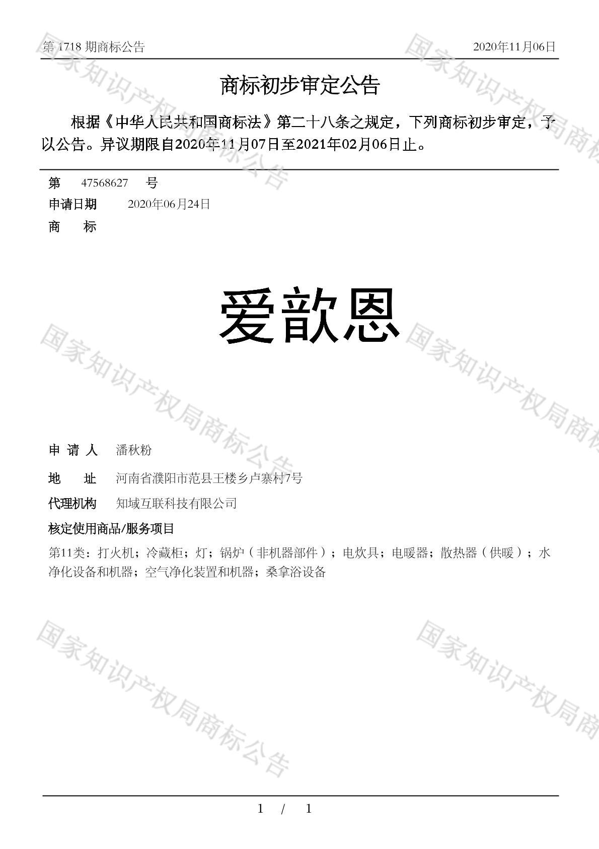 有效期限:2031-02-06 组合类型:中文注册号:47568627