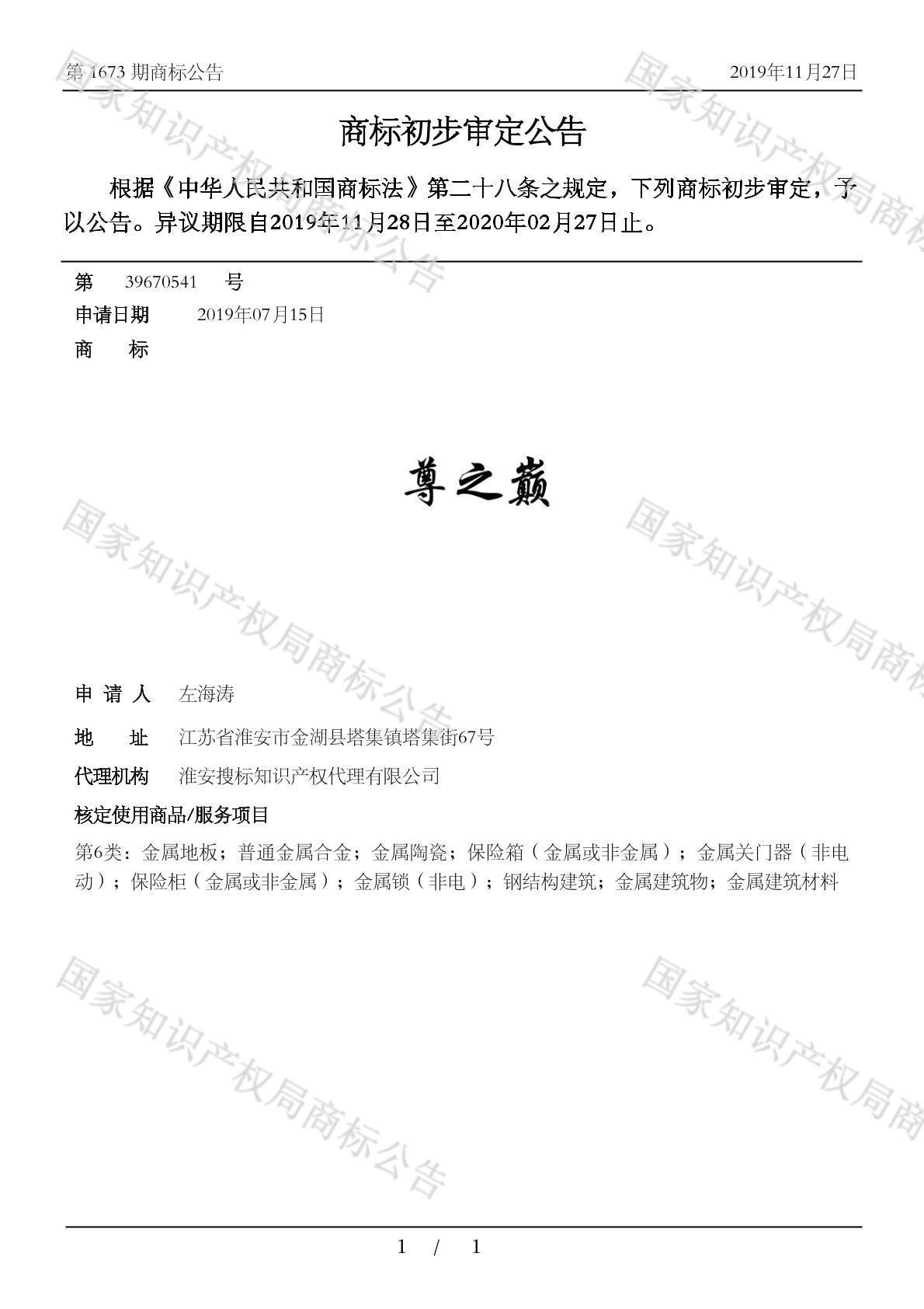 有效期限:2030-02-27 组合类型:中文注册号:39670541