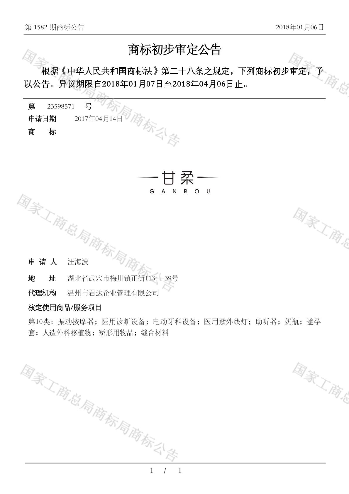 初审公告日期:2018-01-06