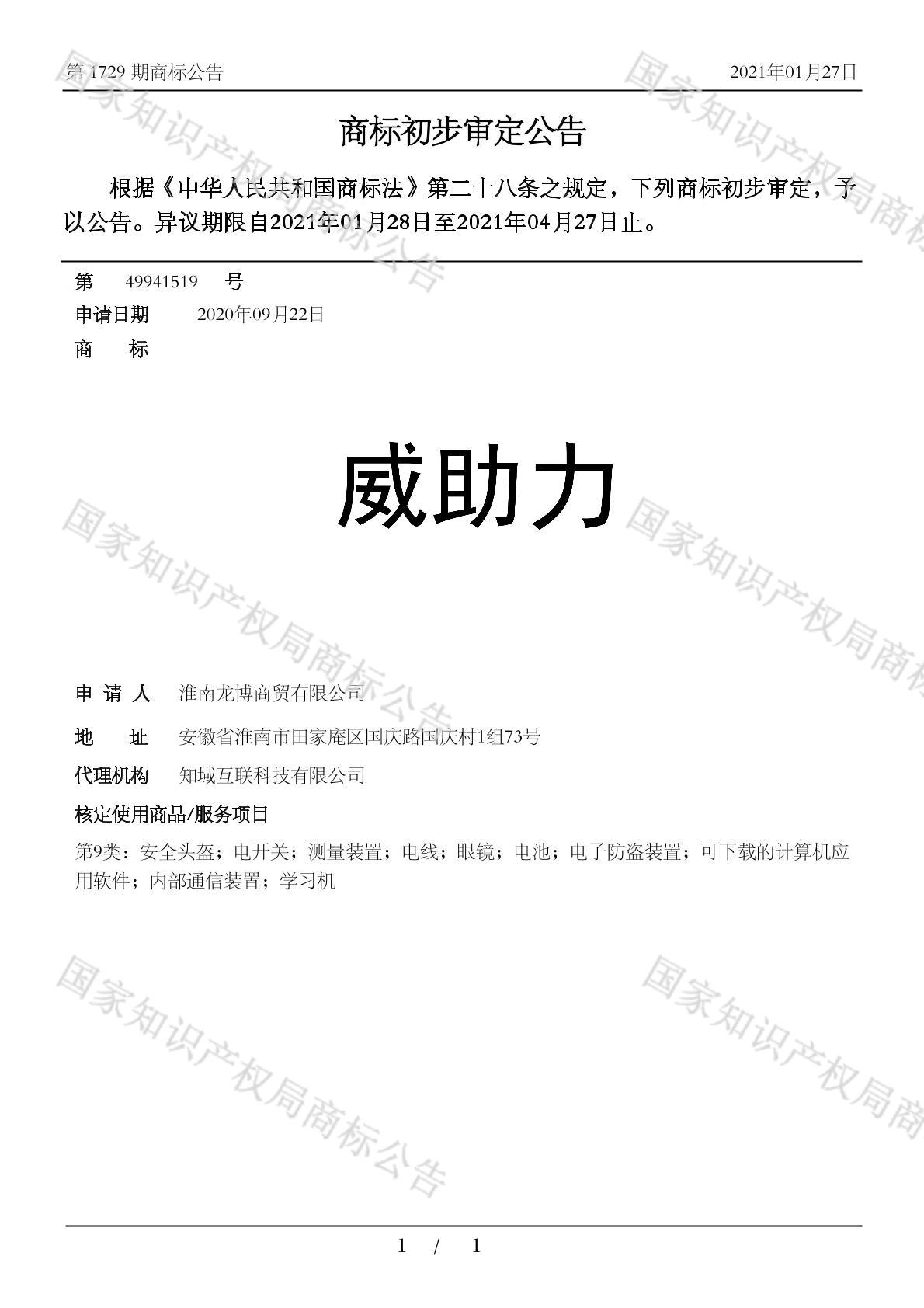 有效期限:2031-04-27 组合类型:中文注册号:49941519