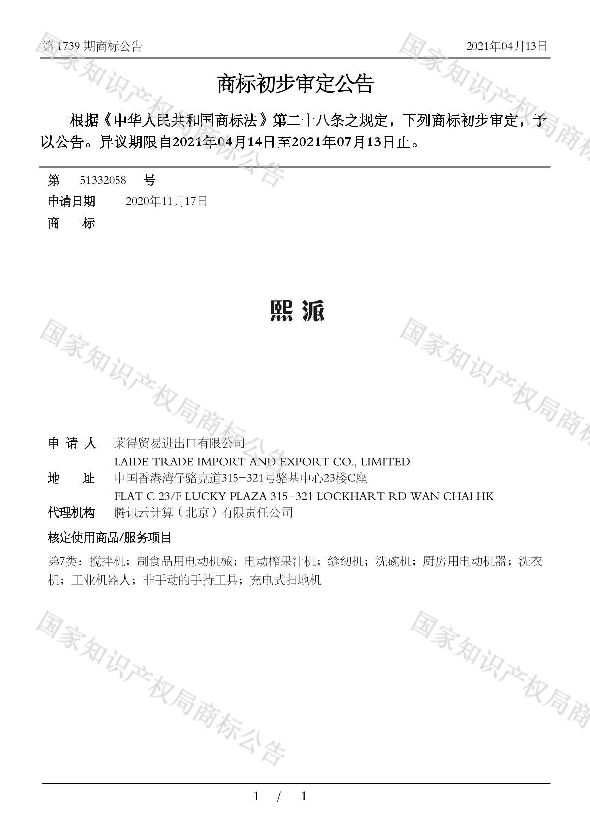 有效期限:2031-07-13 组合类型:中文注册号:51332058