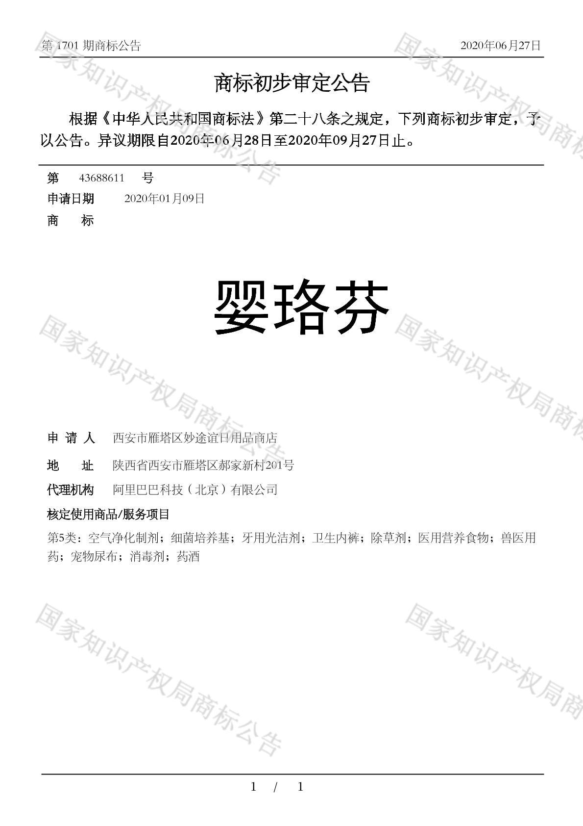 有效期限:2030-09-27 组合类型:中文注册号:43688611