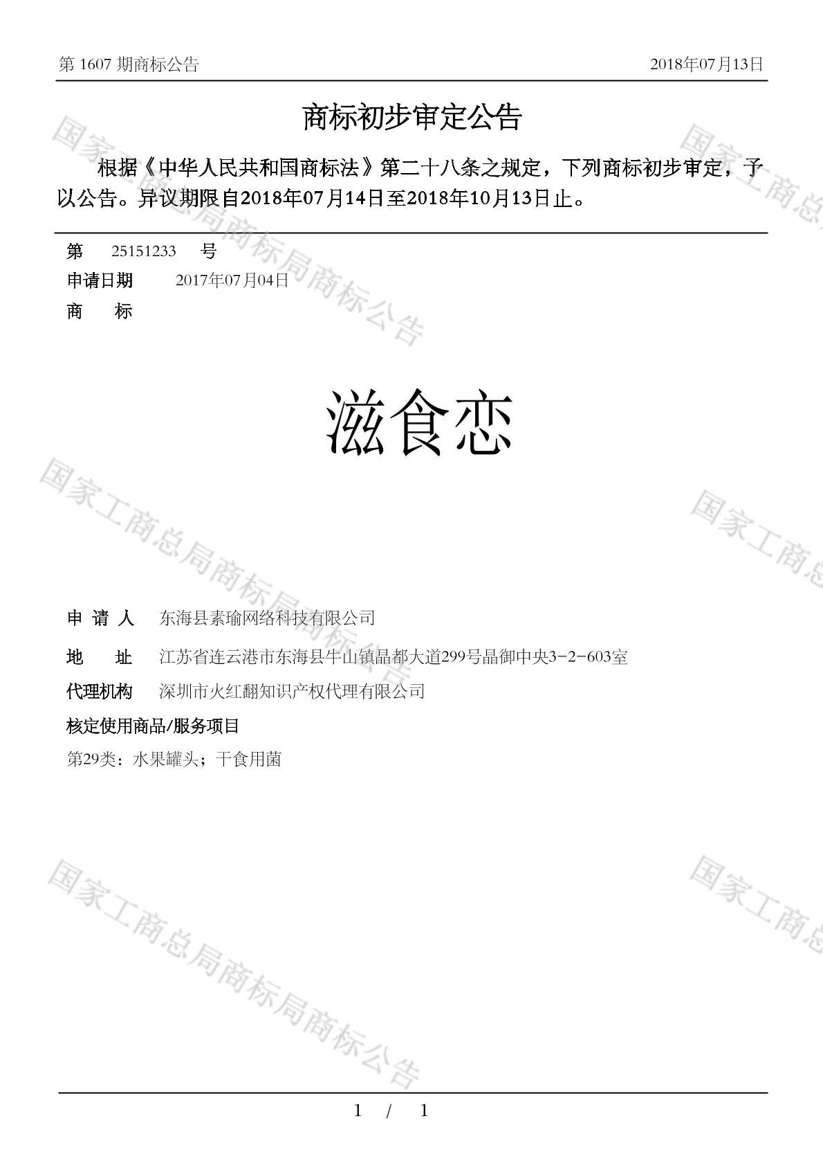 初审公告期号:1607