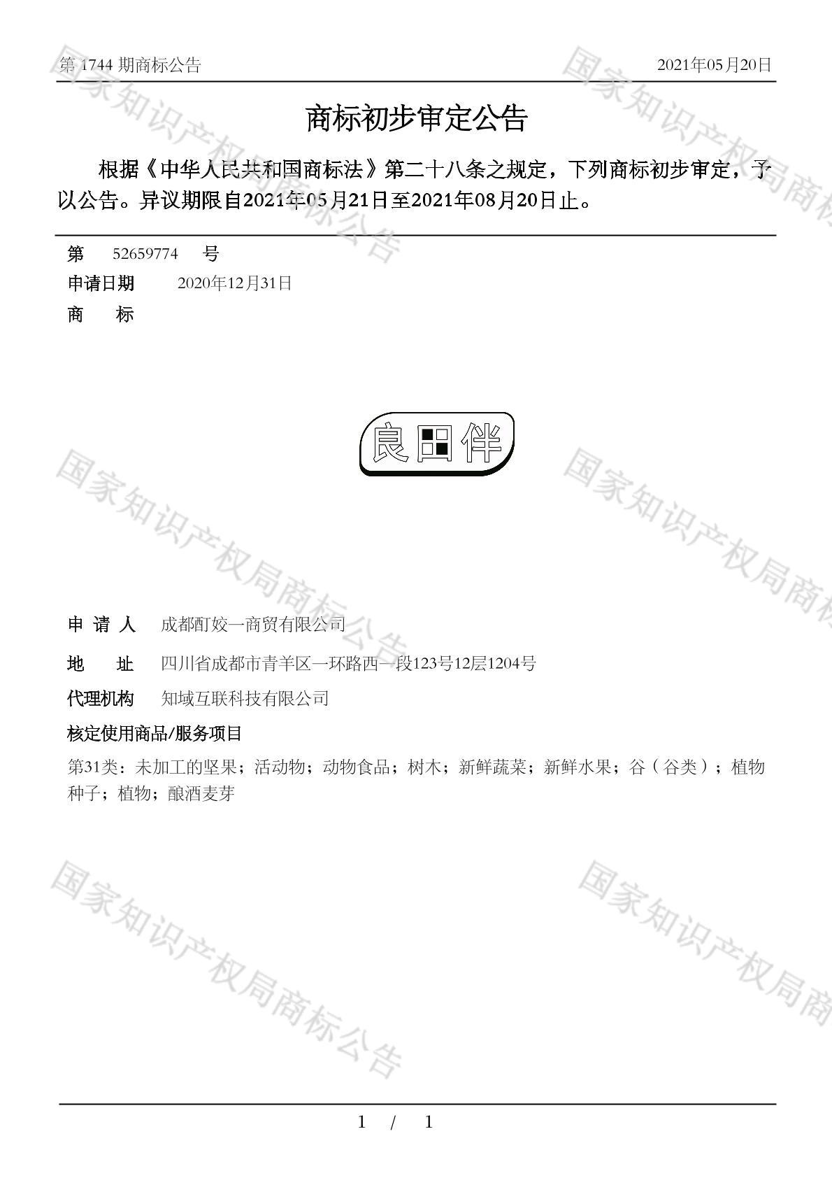 有效期限:2031-08-20 组合类型:中文注册号:52659774