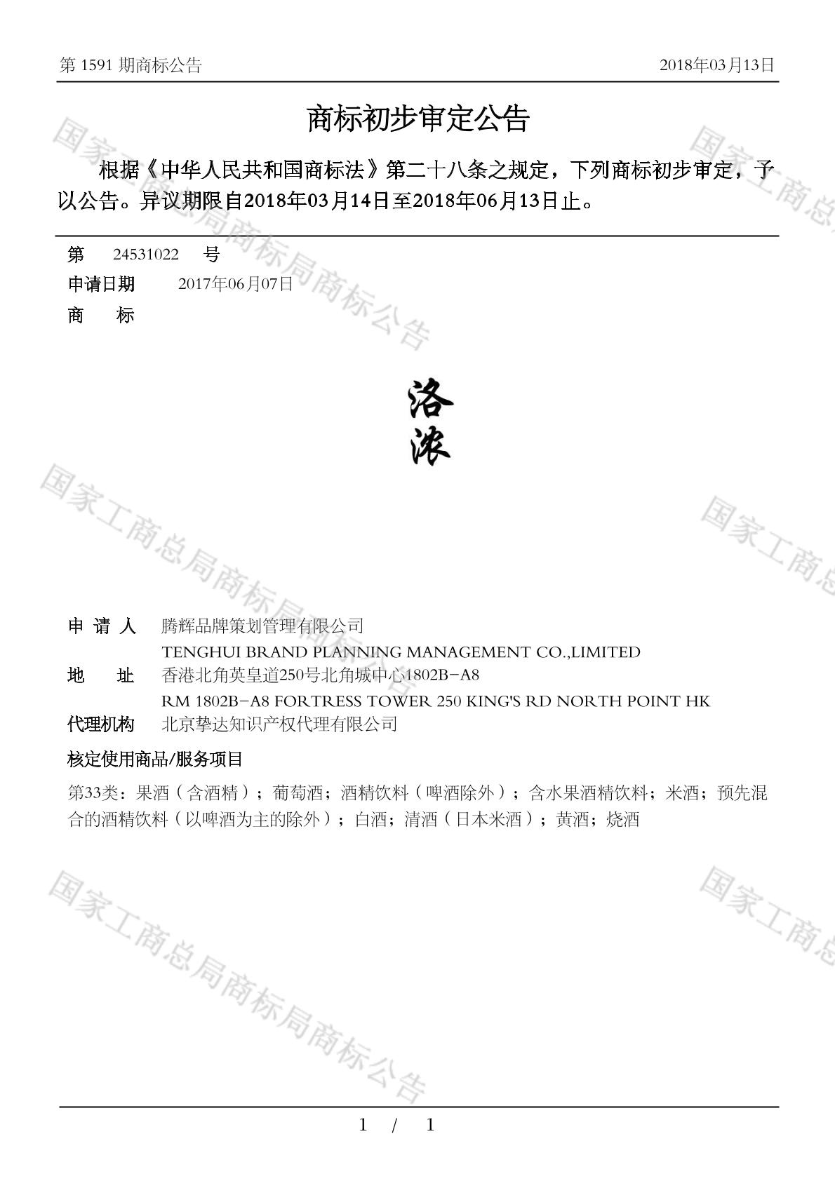 初审公告期号:1591