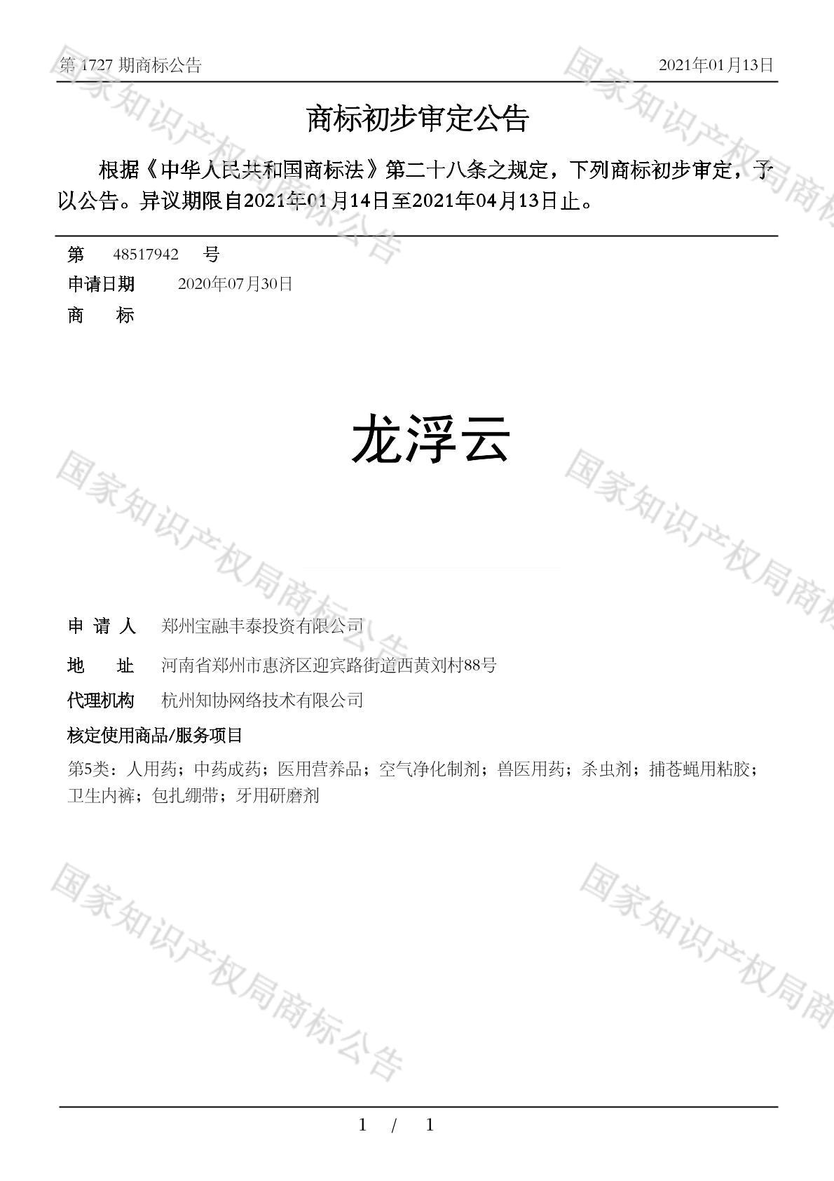 您当前位置:首页商标转让5类商标龙浮云