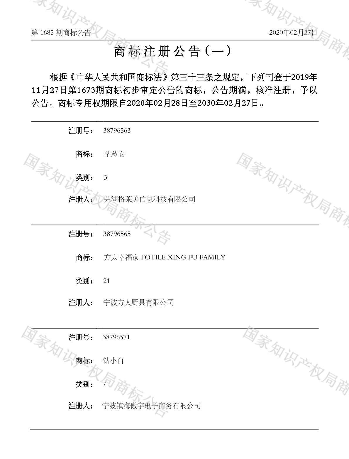 注册公告期号:1685