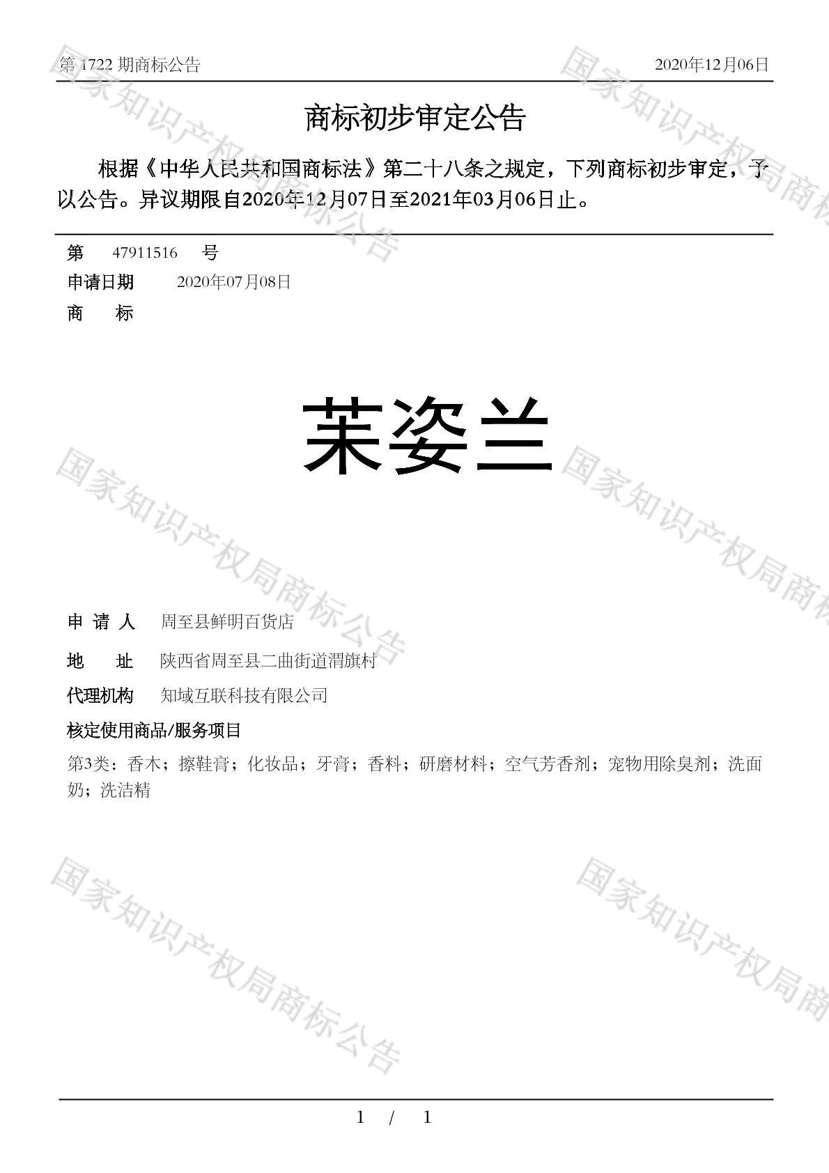 有效期限:2031-03-06 组合类型:中文注册号:47911516