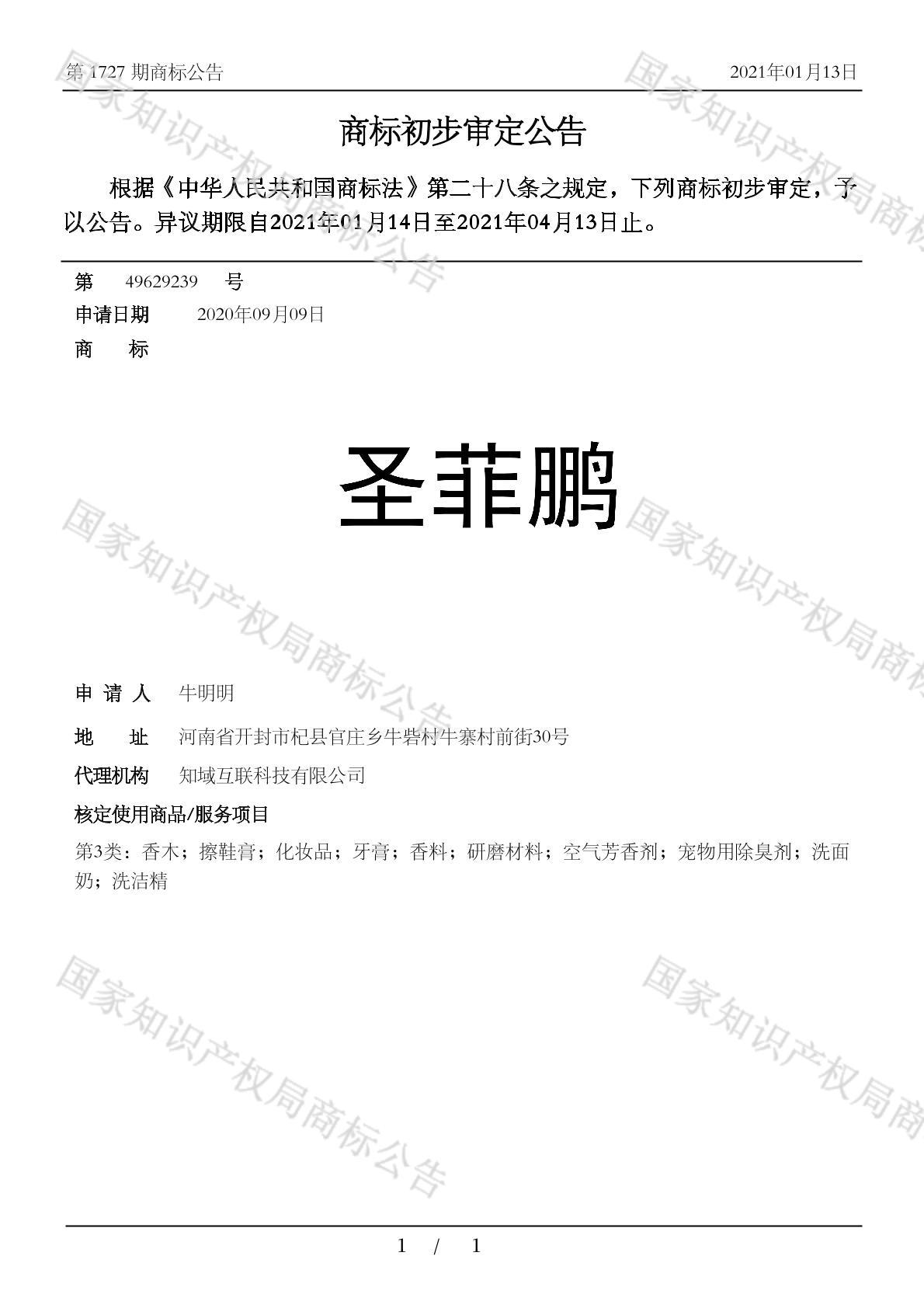 有效期限:2031-04-13 组合类型:中文注册号:49629239