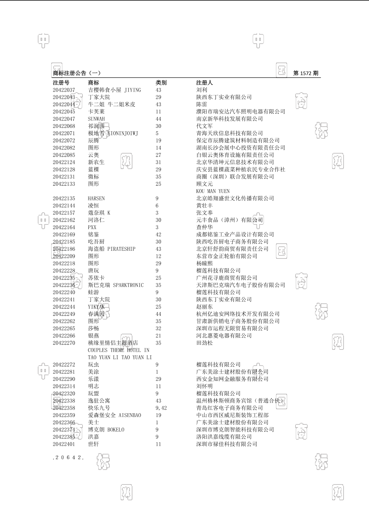 有效期限:2027-10-20 组合类型:中文注册号:20422265