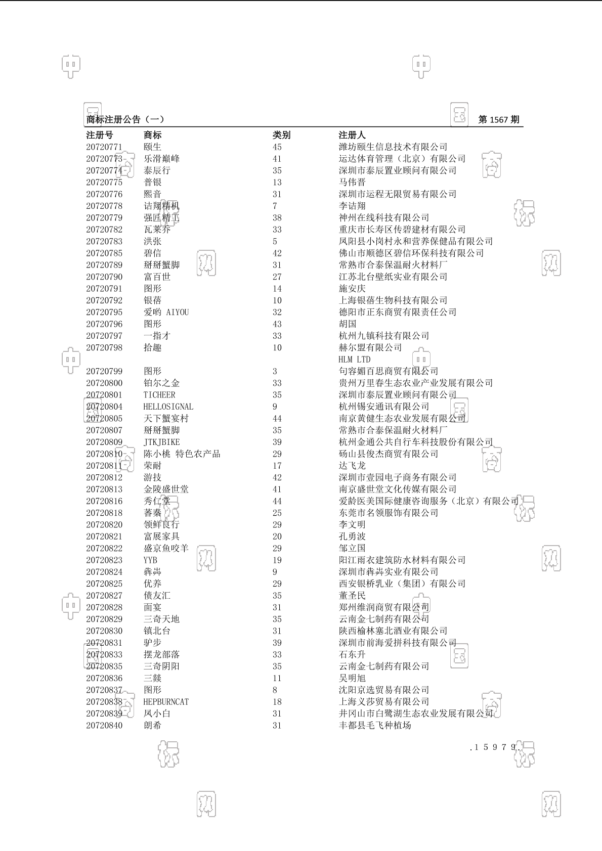 注册公告期号:1567