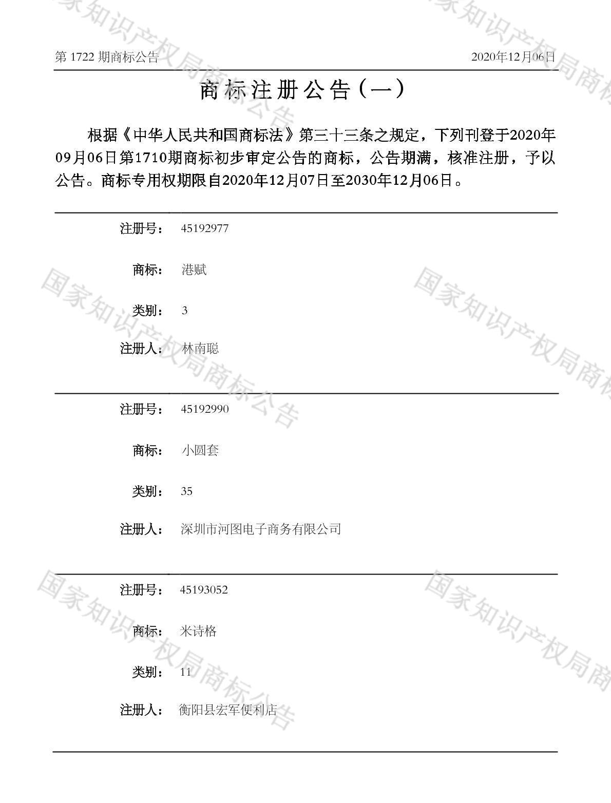有效期限:2030-12-06 组合类型:中文注册号:45193052