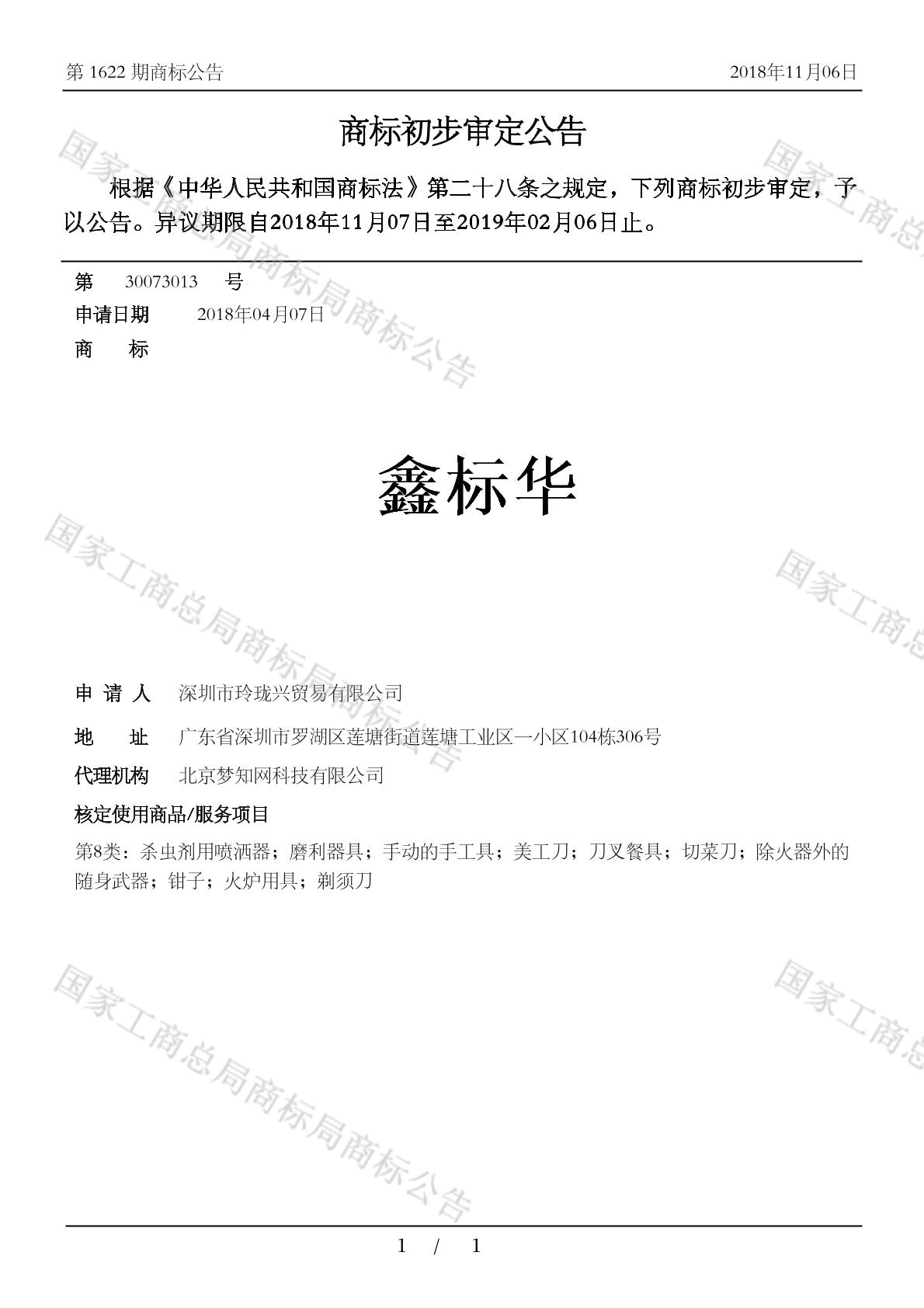 初审公告日期:2018-11-06