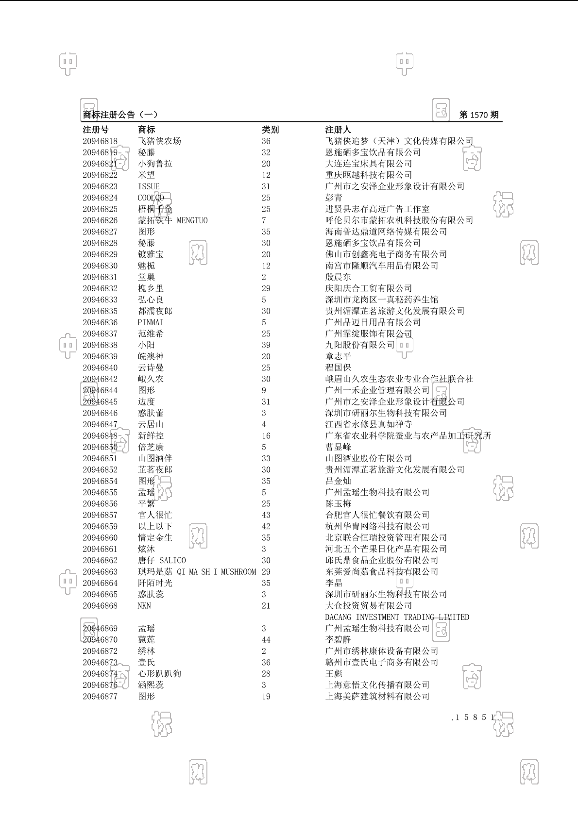 注册公告期号:1570